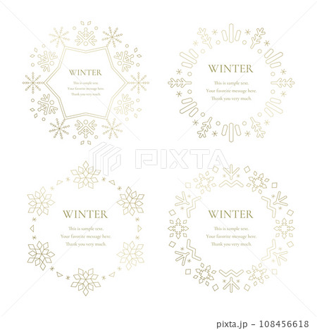 素材_フレームのセット_雪の結晶と光をモチーフにした冬の飾り枠。金色の高級感のある囲みのデザイン