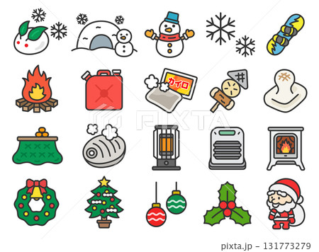 冬シーズンのアイコン(線画カラー)のイラストセット