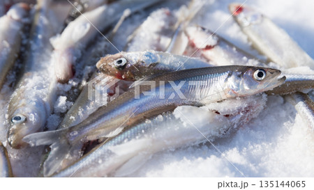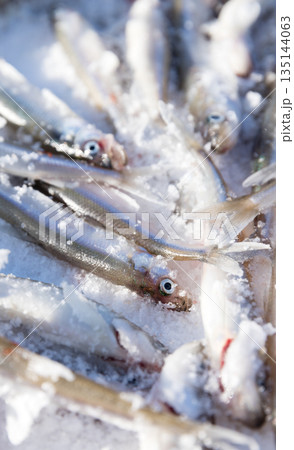 Closeup of fresh smelt - delicious fish that smells of cucumber, very tasty