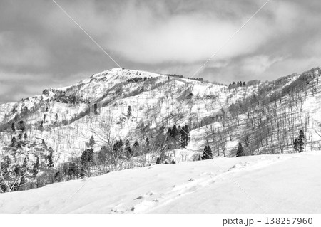 鳥取県の氷ノ山雪山登山 わかさ氷ノ山スキー場から見る赤倉山 新聞、雑誌用
