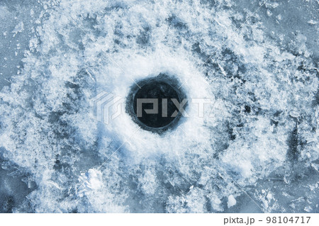 ワカサギ釣りイメージ 湖の氷に空いた穴