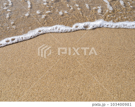 穏やかな海の波打ち際と砂浜。