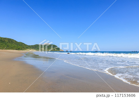 美しい海の砂浜の波打ち際。