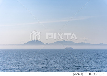 函館から最短距離で貨物船の通る津軽海峡と下北半島を望む(タテ)
