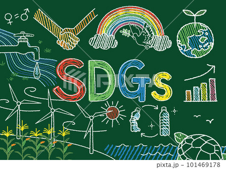 黒板に描いたSDGsのイメージイラスト