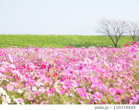 河川敷から見る宮ノ下コスモス広苑/福井県,福井市,江上町