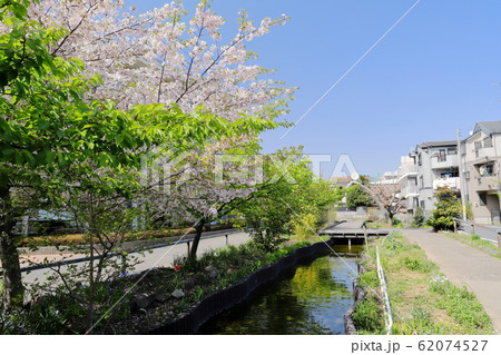 新緑と桜 江川せせらぎ遊歩道 神奈川県川崎市