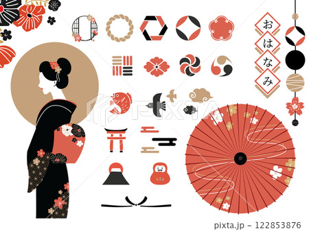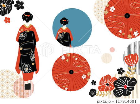 着物、舞妓、芸妓、花魁、日本、あしらい、素材、和風、フレーム、和装、振袖、京都、富士山、伝統的、着付