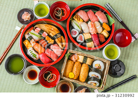 にぎり鮨盛り合せ 江戸前鮨 和食文化 すしイメージ素材