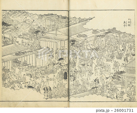 アンティーク・イラスト「日本橋 魚市」/「江戸名所図会」(1834)より