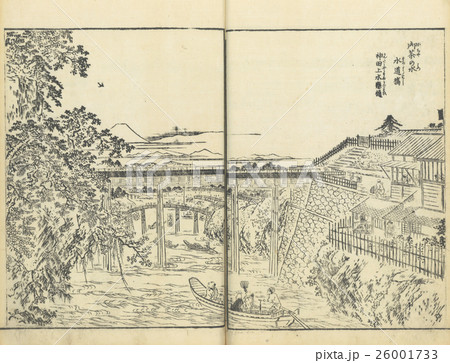 アンティーク・イラスト「御茶ノ水 水道橋」/「江戸名所図会」(1834)より