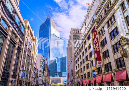 日本の東京都市景観10月10日。日本橋一丁目の再開発事業やCOREDO室町3(コレド室町3)などを望