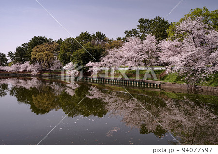 大阪服部緑地若竹池・池の周りに咲く桜
