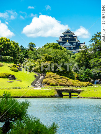夏の岡山 後楽園の清々しい景色 青空と延養亭