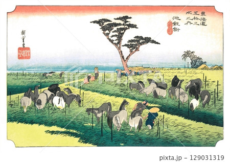 歌川広重 東海道五十三次(保永堂版)#40 池鯉鮒 馬市