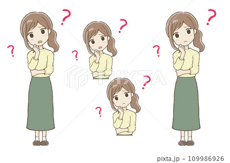 迷っている 分からない 疑問 ロングヘアの女性(上半身)