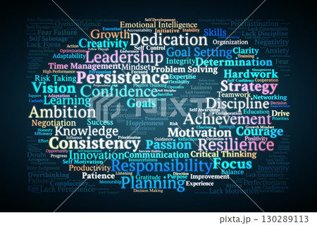 Success And Failure Word Cloud. Core Terms About Mindset, Habits, Motivation, Discipline, And Factors Shaping Achievement Or Setbacks In Personal And Professional Life.