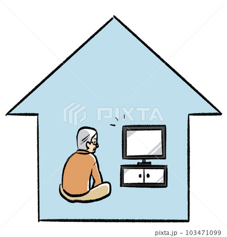 家に引きこもりテレビを見るおじいちゃんの手書き風イラスト