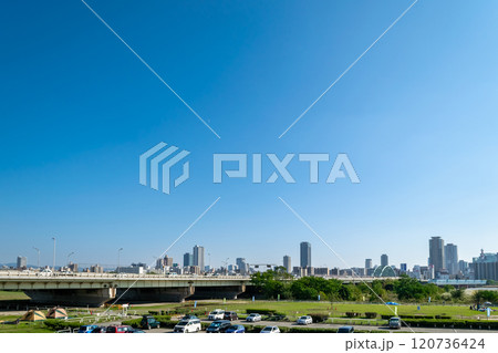 大阪市 新淀川大橋と淀川河川公園 西中島地区