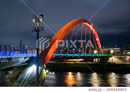 台湾 台北市松山区 レインボー橋から見る夜の基隆河