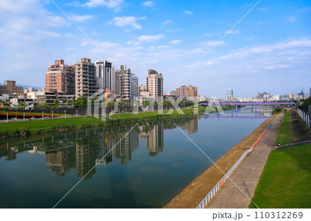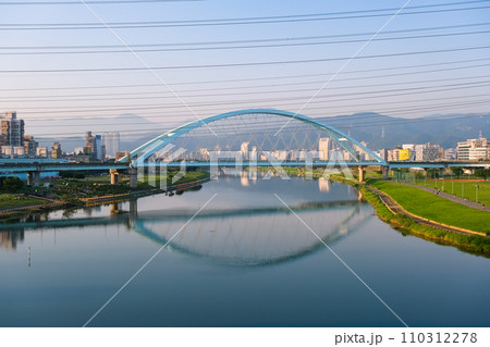 台湾 台北市 レインボー橋から眺める基隆河と台北の街並み