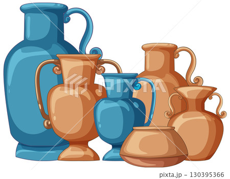 Middle Eastern Clay and Ceramic Vases Collection Illustration