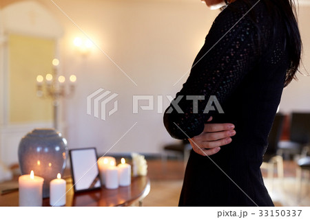 Cremation urn silhouetted against a beautiful sunset in a peaceful setting