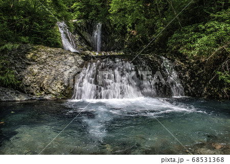 夏の木漏れ日の滝