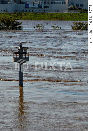 令和元年東日本台風・前日の大雨で増水した荒川(埼玉県戸田市)