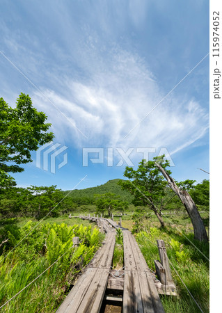 栃木県那須高原沼ッ原湿原木道のある風景