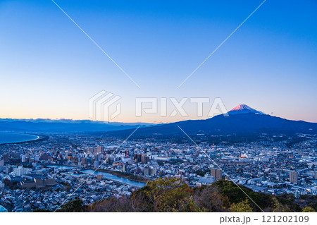 (静岡県)沼津・駿東郡の街並みと富士山 夕景