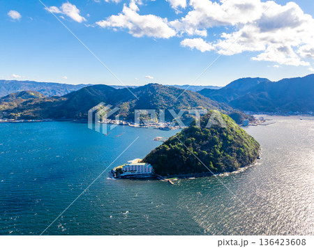 春の青空と美しい静岡県沼津市戸田の海 諸口神社の鳥居