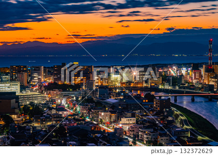(静岡県)沼津の街並みと富士山 夕景