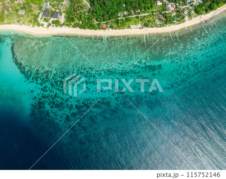 Sun reflection over transparent turquoise sea water with corals. Santa Fe, Tablas, Romblon. Philippines.