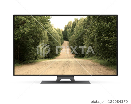 TV with forest country road on screen