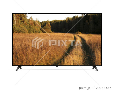 Smart tv with country road in a field on the screen