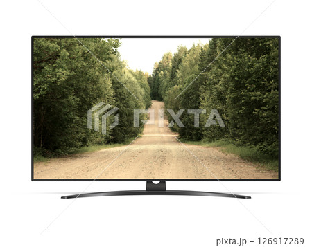 Smart tv with forest country road on screen