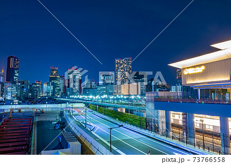 日本の東京都市景観 高輪ゲートウェイ駅や高輪ゲートウェイシティなどを望む=22日