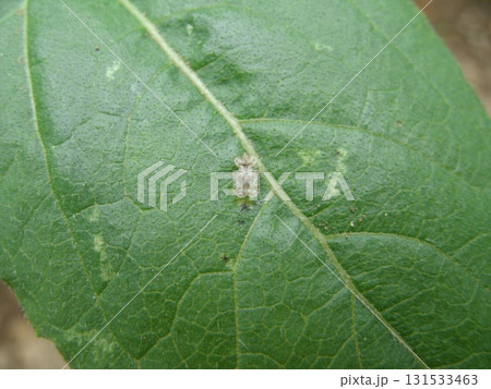 ヒマワリの葉っぱの上にいる外来種で害虫のアワダチソウグンバイ