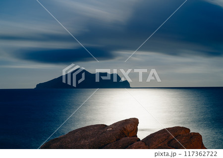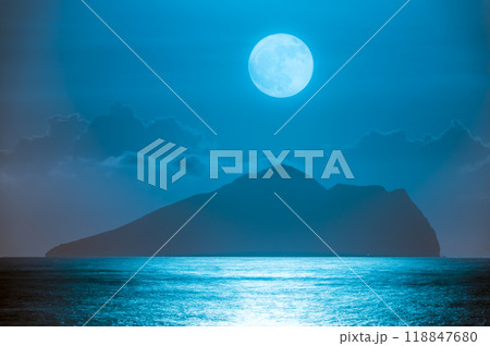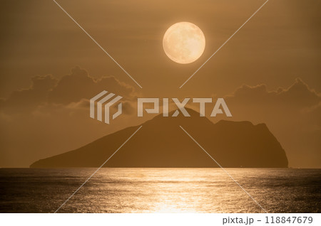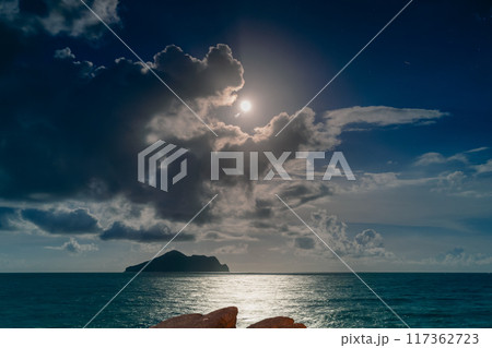 Moonrise over Turtle Island, Yilan, Taiwan.
