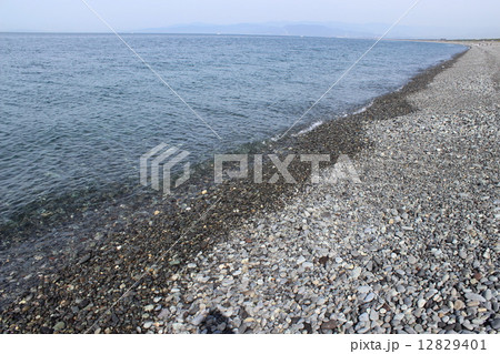 渚にディンギーがある鎌倉材木座海岸の風景(無地の帆)