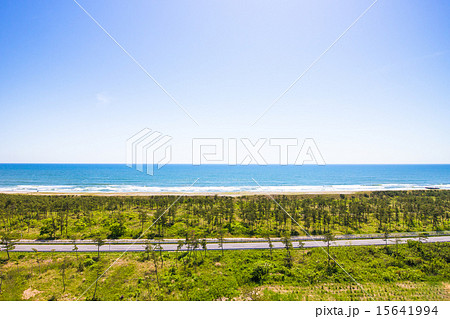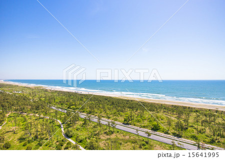 どこまでも伸びるきれいな海岸線を高度100mから空撮