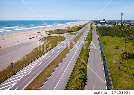 九十九里海岸九十九里有料道路の長生インターと一松海水浴場を空撮