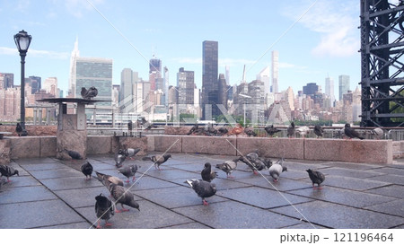 New York City waterfront skyline, Manhattan Midtown riverfront skyscrapers. Cityscape from Queens.