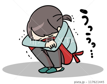 エプロンを着た主婦 上半身 青ざめる・疲労感