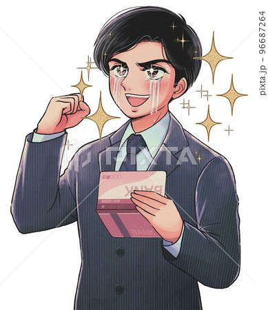 レトロ劇画風・お金が増えて喜ぶ会社員のイラスト・キラキラ