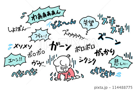 号泣する女性と悲しい感情のオノマトペ 擬音語