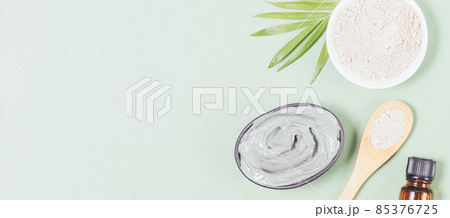Set of organic cosmetics for skin with cosmetic clay and essential oil