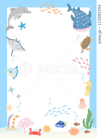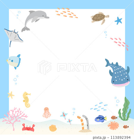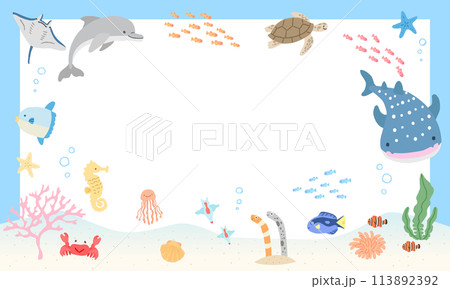海の中のイラストフレーム 03