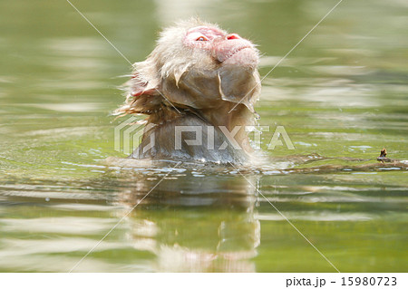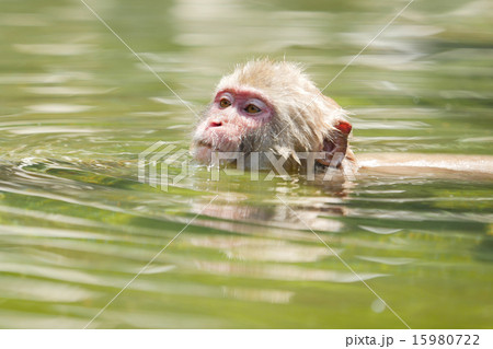 泳ぐニホンザルの子供